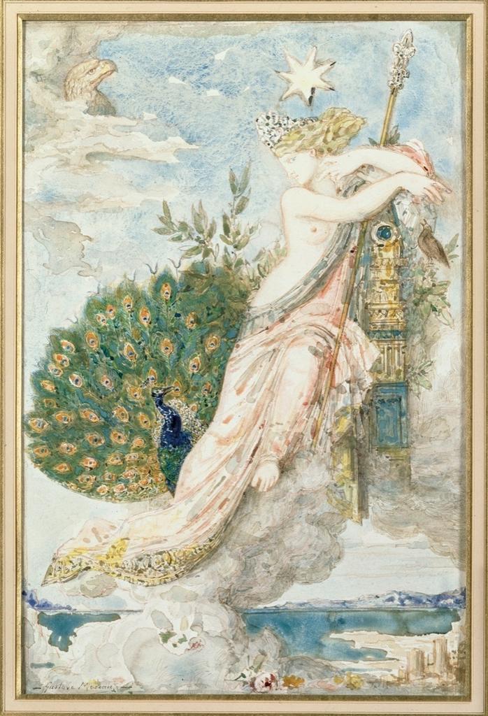 Le Paon se plaignant à Junon, 1882, sanguine (papier report ?), plume et encre brune, aquarelle, gouache, Paris, musée Gustave Moreau. © RMN-GP / René-Gabriel Ojéda