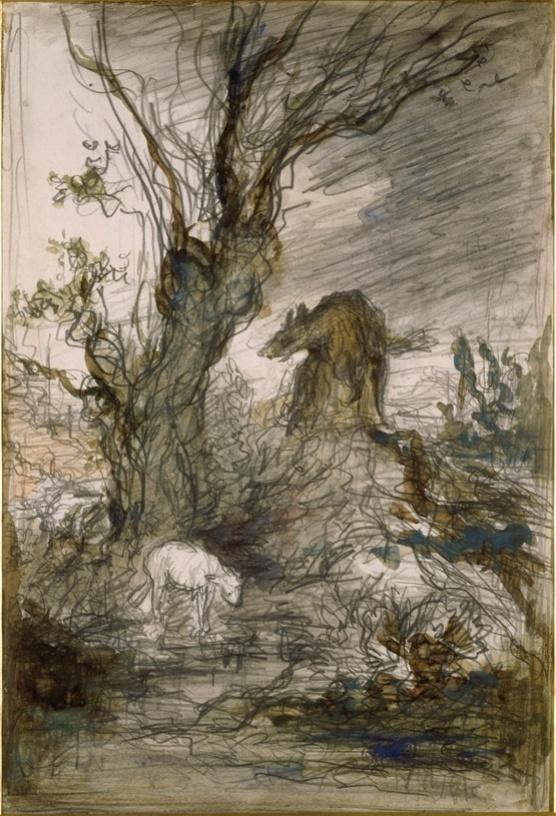 Le Loup et l’Agneau, 1882, graphite, gouache, aquarelle, 28,5 x 19,5 cm, Paris, musée Gustave Moreau. © RMN-GP / René-Gabriel Ojéda