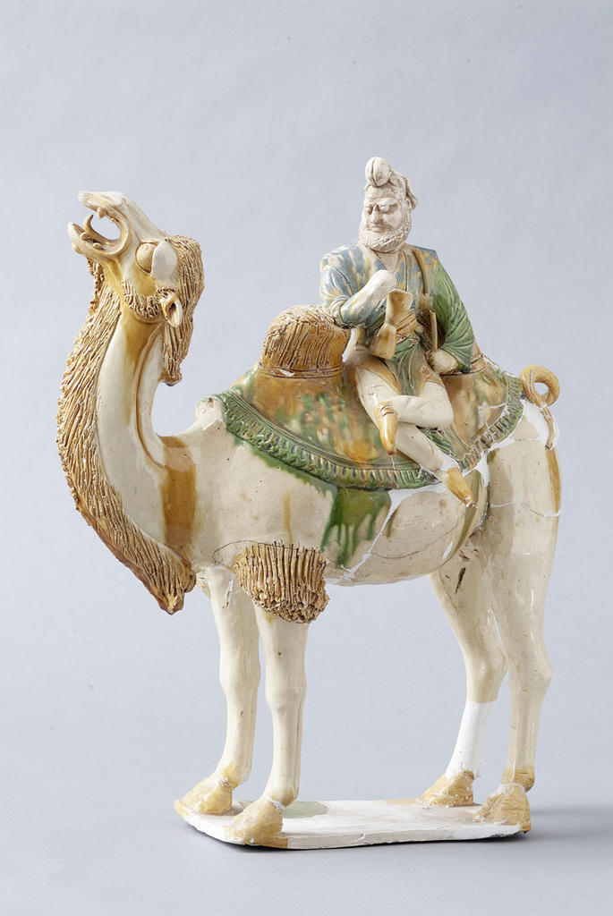 Musicien sur un chameau, découvert en 2002, canton de Guodu, district de Chang’an (province du Shaanxi). Dynastie Tang (618-907), VIIIe siècle. Terre cuite à glaçure trois couleurs (sancai), 50,1 x 40,5 cm. Musée de Xi’an, province du Shaanxi. P Photo service de presse. © DR