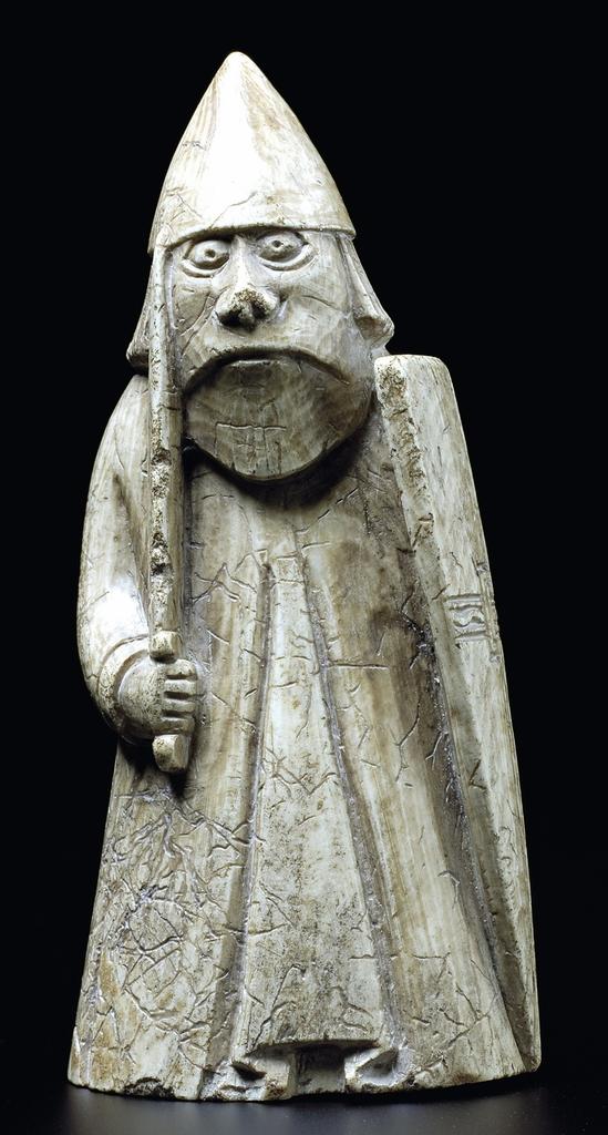 Pièce d’échecs de Lewis, garde ou tour. Elle fait partie des 78 pièces découvertes en 1831 sur l’île de Lewis, qui appartenait à l’époque au royaume de Norvège. Ivoire de morse. XIIe siècle. National Museum of Scotland, Édimbourg, Écosse. © National Museums Scotland
