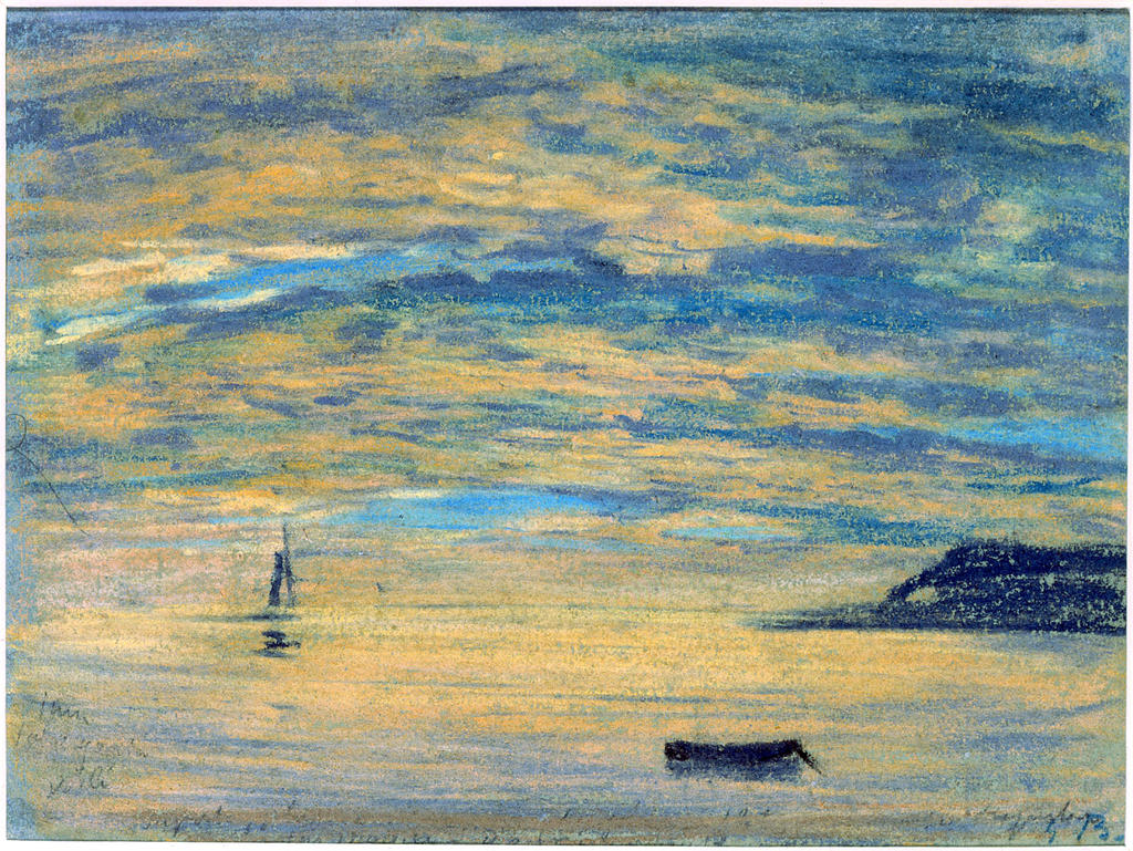 Eugène Boudin (1824-1898), Couchant et falaise (Étretat), vers 1854-1859. Pastel sur papier. Honfleur, musée Eugène-Boudin. Legs Eugène Boudin, 1899. Photo service de presse. © Musées de Honfleur