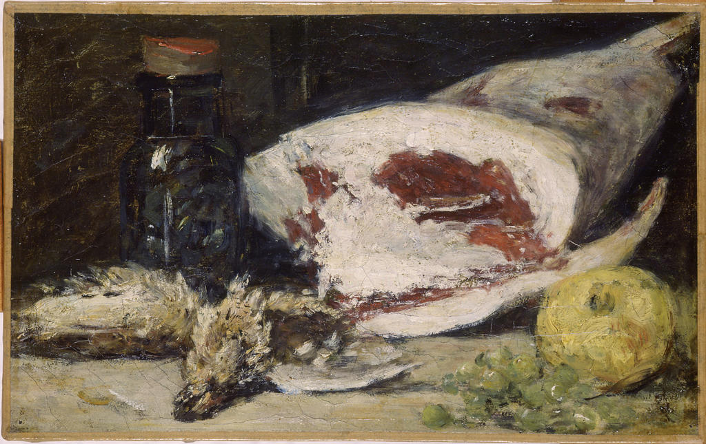 Eugène Boudin (1824-1898), Nature morte au gigot, vers 1859. Huile sur toile à gros brins. Honfleur, musée Eugène-Boudin. Legs Eugène Boudin, 1899. Photo service de presse. © Musée Eugène-Boudin, Honfleur
