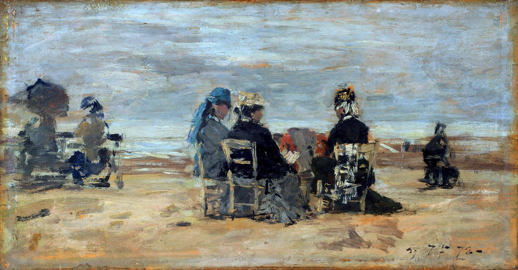 Eugène Boudin (1824-1898), Scène de plage à Trouville, 1880. Huile sur panneau d’acajou. Honfleur, musée Eugène-Boudin. Legs Eugène Boudin, 1899. Photo service de presse. © Antoine Cazin, La Fabrique de patrimoines en Normandie