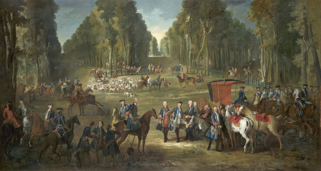 Jean-Baptiste Oudry, Le Rendez-vous au carrefour du Puits-du-Roi, 1735. Huile sur toile, 357 x 650 cm. Fontainebleau, musée national du château. © Grand Palais-Rmn (château de Fontainebleau) / Thierry Ollivier