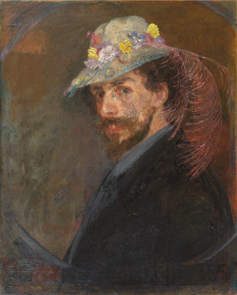 James Ensor (1860-1949), Autoportrait avec chapeau fleuri. Huile sur toile. Ostende, Mu.ZEE.