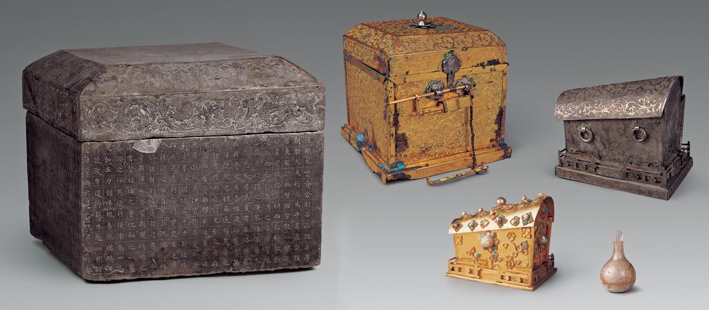 Trésor du temple du Grand Nuage. Pierre, cuivre, argent et or. Musée de la province du Gansu, province du Gansu. Musée de la province du Gansu, province du Gansu