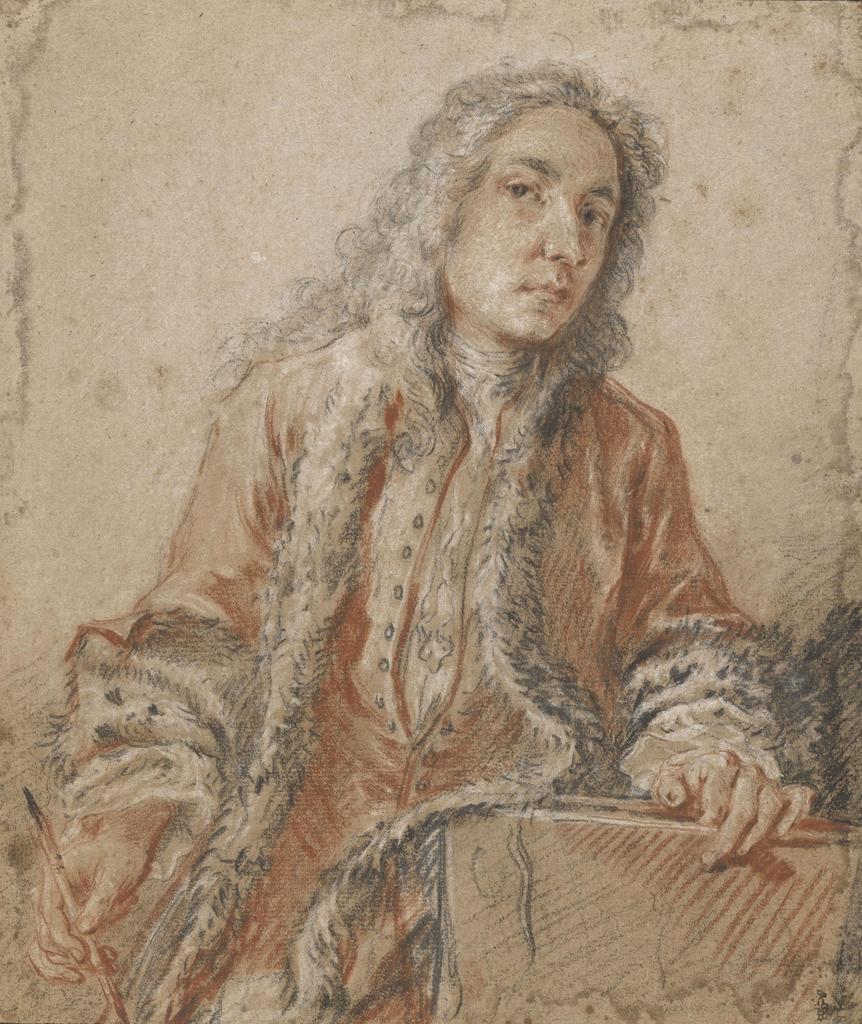 Anonyme, Portrait d’Antoine Watteau au portefeuille, 1715. Sanguine, pierre noire et craie blanche, 23,8 x 20 cm. Chantilly, musée Condé.