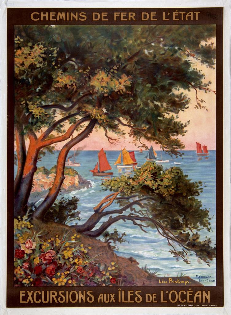 Léon Printemps (1871-1945), affiche des Chemins de fer de l’État, Excursions aux îles de l’océan, 1924. Les-Lucs-sur-Boulogne, Historial de Vendée. Photo service de presse. © Historial de Vendée