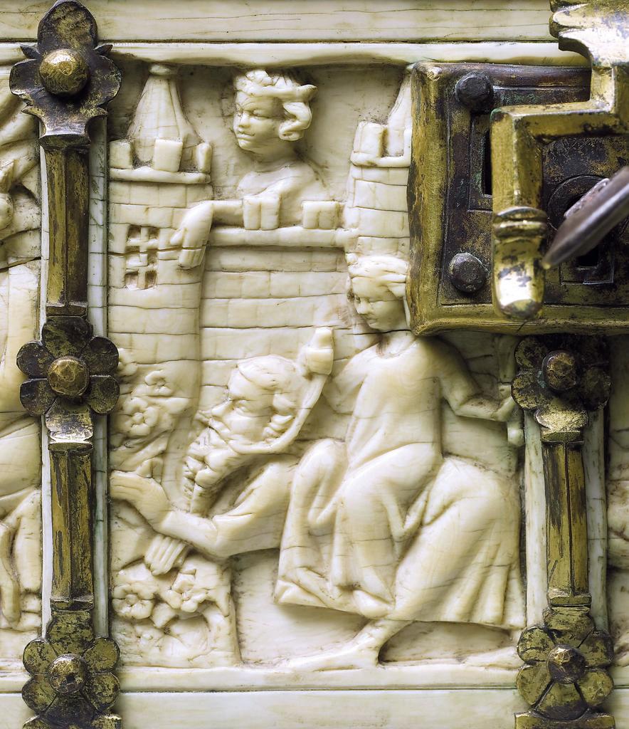 Histoire d’Aristote et Phyllis, détail d'un coffret composite, Paris, vers 1300-20. Paris, musée de Cluny – musée national du Moyen Âge. © RMN (musée de Cluny – musée national du Moyen Âge) – M. Urtado