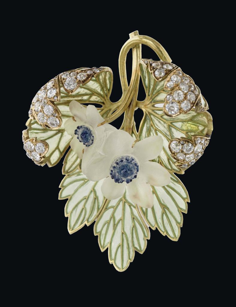 René Lalique (1860-1945), pendentif Anémone des bois, vers 1900. Or, diamants, émail et pâte de verre, 6,6 x 5,2 x 2,5 cm. Petit Palais, musée des Beaux-Arts de la Ville de Paris. Photo service de presse. Photo CC0 Paris Musées / Petit Palais