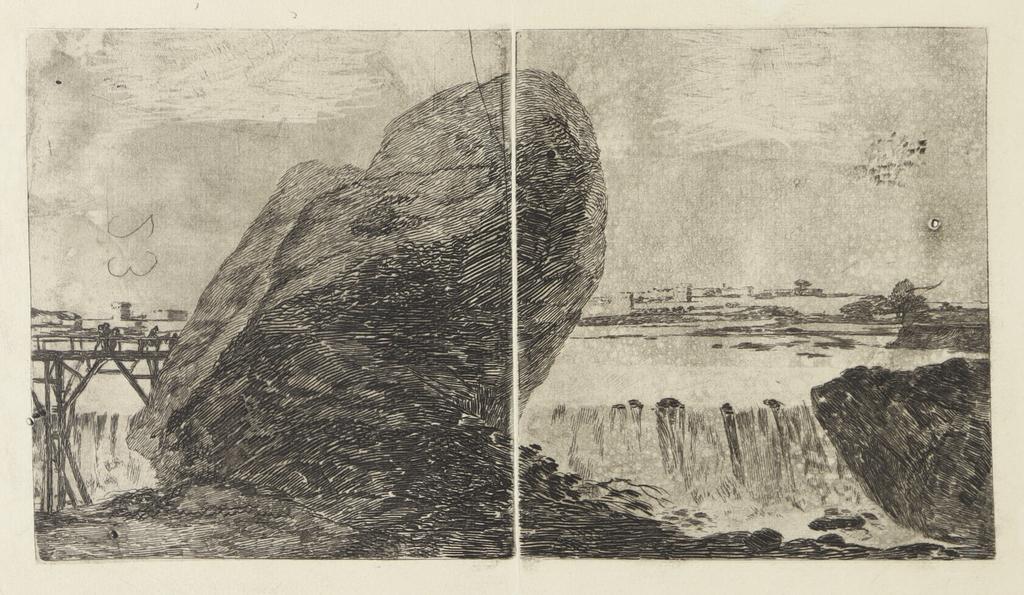 Francisco de Goya y Lucientes (1746-1828), Paysage avec chute d'eau, vers 1920, deuxième état.Estampe sur papier vergé, 16,5 x 28,2 cm. Barcelone, Palau Antiguitats. Photo service de presse. © Palau Antiguitats
