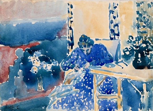 Henri-Edmond Cross (1856-1910), La couture. Aquarelle sur papier, 12 x 17 cm. © galerie La Présidence