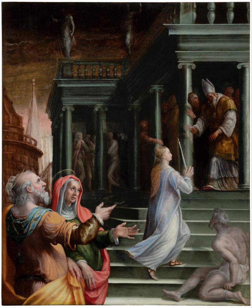 Lavinia Fontana (1552-1614), en collaboration avec Prospero Fontana (1512-1597), La Présentation de Marie au Temple, vers 1575-1580. Huile sur toile, 91,5 x 74,5 cm. Montréal, musée des Beaux-Arts, achat grâce à la générosité de la Fondation Courtois. © Claudio Giusti, Florence