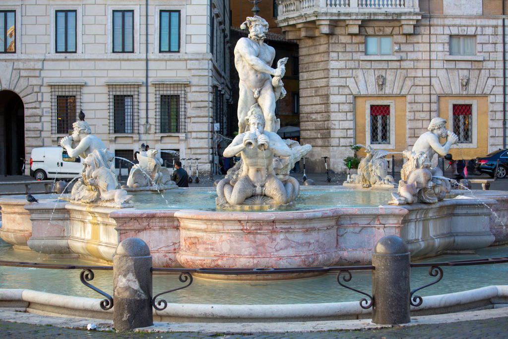 La fontaine du Maure (fontana del Moro), piazza Navona, à Rome. Au centre se trouve la sculpture représentant Triton, réalisée par Giovanni Antonio Mari d’après le modèle de Bernin. © Adobestock