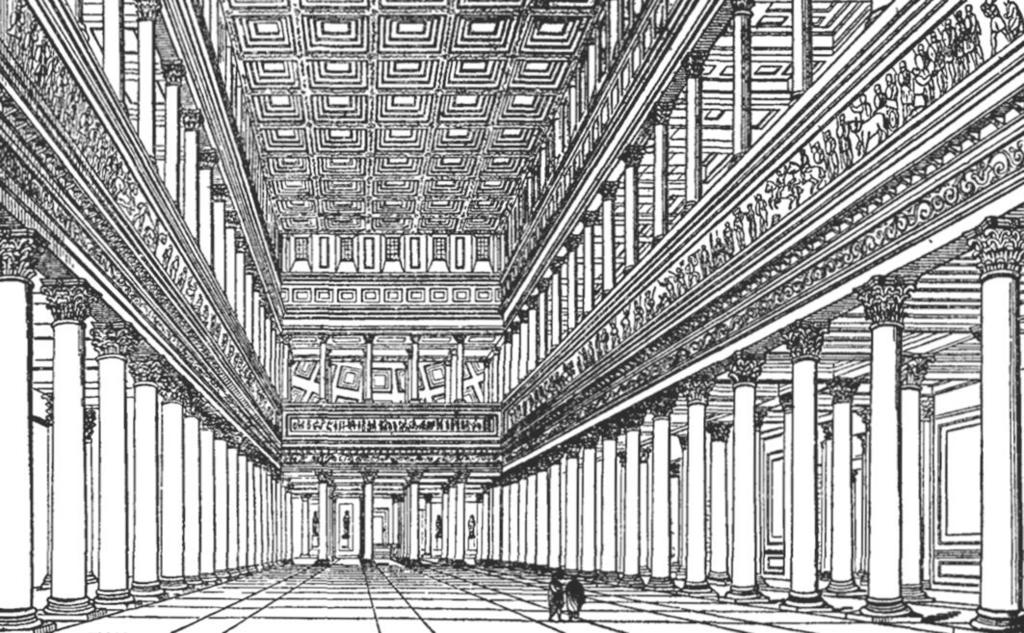 Proposition de restitution de l’intérieur de la basilique, dans l’Encyclopædia Britannica de 1911. DR