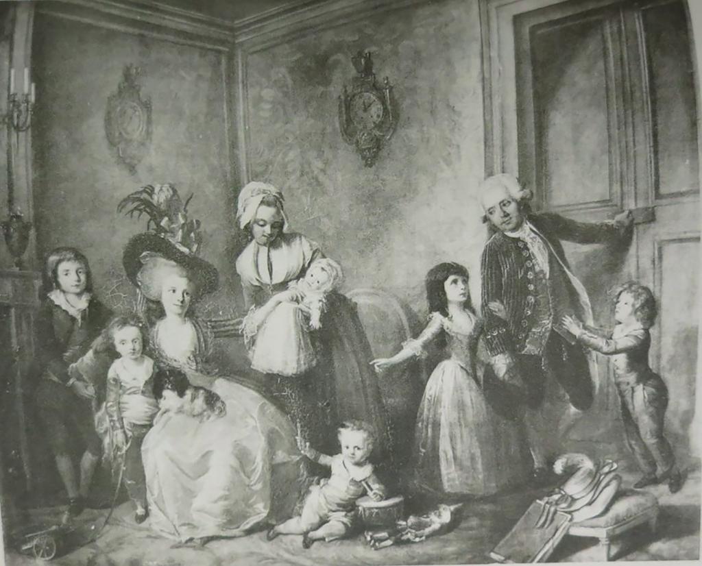 Un article écrit en 1921 par Jean Vallery-Radot11 permet d’avancer une hypothèse sur la personne qui suggéra peut-être à Georges Jacob de faire appel à Charles Lepeintre. Proposant de lui attribuer le portrait de la famille Sauvan appartenant à son oncle René Vallery-Radot12 en raison des similitudes entre ce tableau et celui représentant le duc et la duchesse de Chartres et deux de leurs enfants peint par Lepeintre en 177613, l’auteur apporte quelques précisons sur le père de famille, Jean-Baptiste Sauvan ancêtre de René Vallery-Radot. Ce dernier était entré au service du duc de Chartres en 1773, puis en était devenu contrôleur de la Bouche en 1785 pour enfin être nommé, après 1790, son contrôleur du Mobilier. En supputant les relations que pouvaient entretenir les différentes personnes au service de la maison princière, est-il possible d’envisager que Sauvan par ses nouvelles fonctions connaissait Jacob et lui a suggéré de recourir aux services de Charles Lepeintre ? La chose n’est pas prouvée mais vraisemblable et reste, en l’état actuel des connaissances, l’explication la plus plausible de la commande de Georges Jacob à Charles Lepeintre.