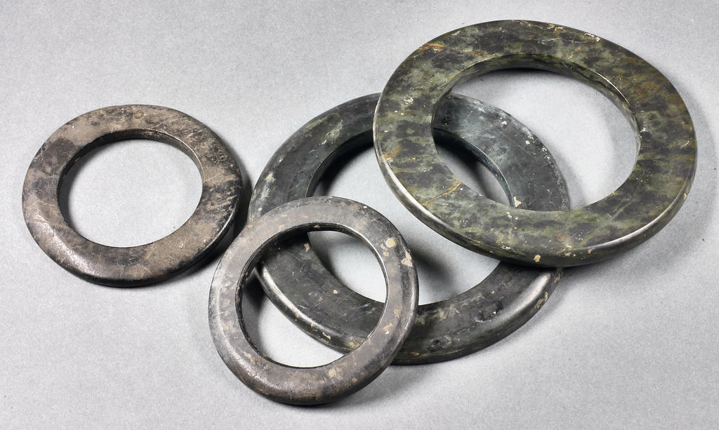 Anneaux-disques en serpentine et en calcaire gris