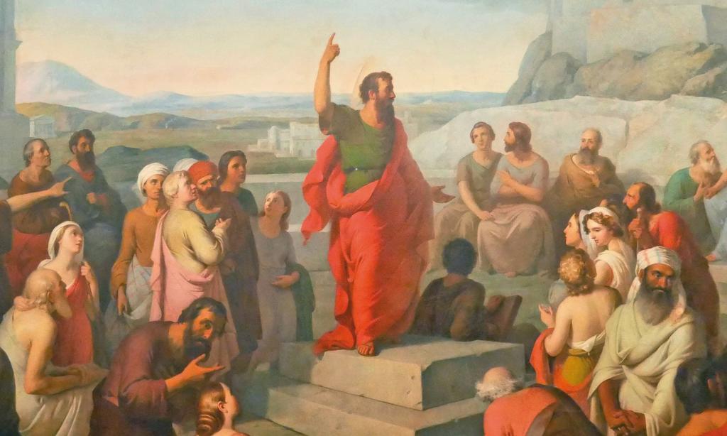 « L’épisode relaté est bien celui des Actes des Apôtres, Paul prêchant aux épicuriens comme aux stoïciens ainsi qu’au peuple d’Athènes, dans toute sa diversité. »