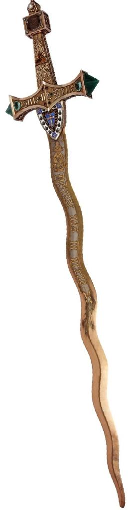 Épée symbolique, 1878. Maison Mellerio dits Meller, Paris. Argent doré, pierres fines et précieuses, émail, perles. Le Mont-Saint-Michel, en dépôt. © Archives départementales de la Manche, Alexandre Poirier