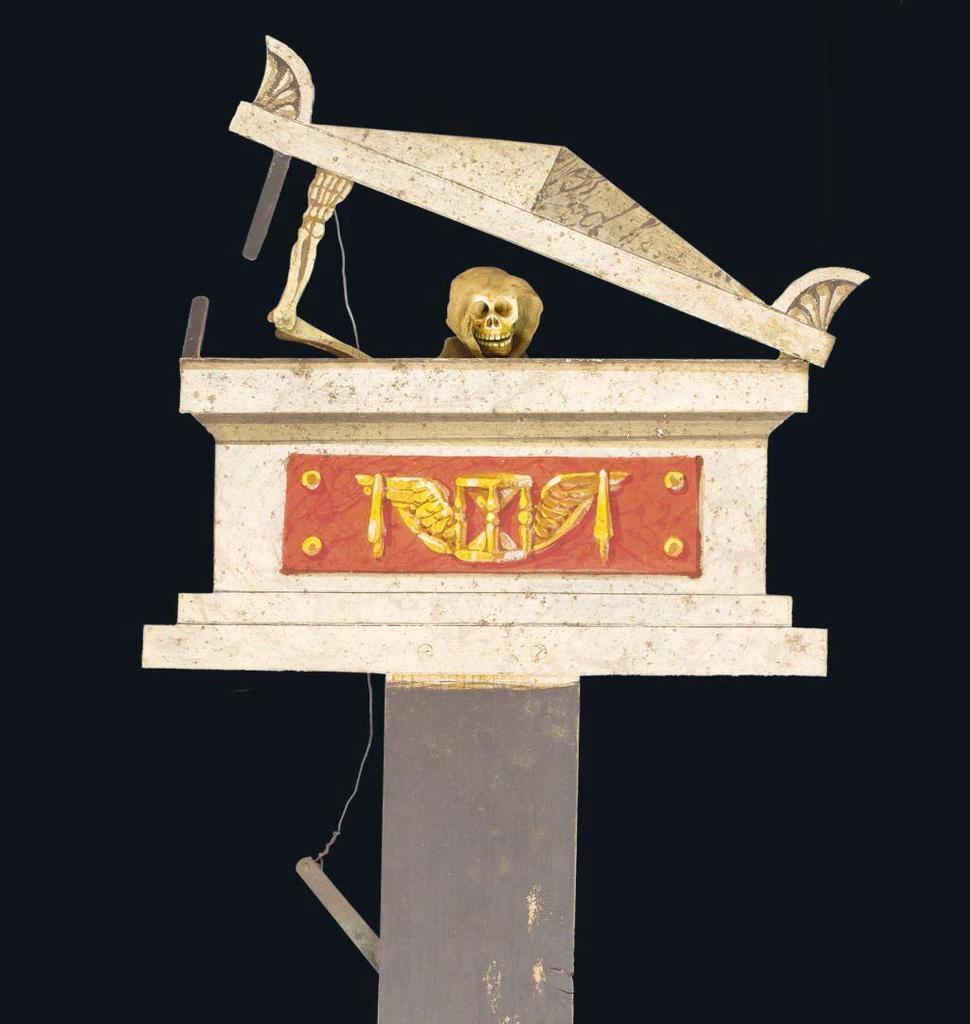 Visionnaire, Paul Dupuy rassembla des collections de pré-cinéma et de cinéma, que l’important fonds Jean Rouzeau (2 000 objets) est venu compléter ensuite. Ce rarissime squelette est une acquisition de 2018. Lorsqu’il a été découvert en 1991 dans le grenier du château de Moisse dans la Creuse, il était accompagné de plaques de projection et d’un fantascope, lanterne magique en bois utilisée dans les spectacles de fantasmagorie, soit pour des projections à partir de plaques de verre, soit à partir d’objets opaques.