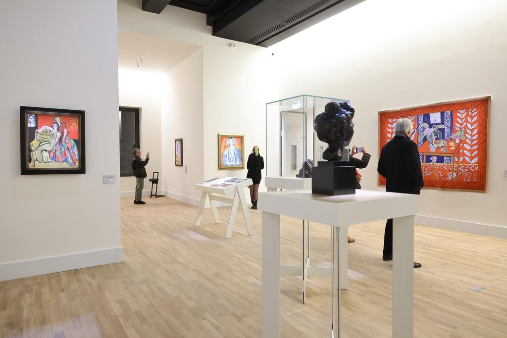 Les collections du musée – constituées du noyau de 82 œuvres que l’artiste a offertes à sa ville natale à la fin de sa vie et des nombreuses acquisitions et donations qui se sont succédé depuis – s’exposent désormais en majesté. Elles couvrent l’ensemble de la carrière de l’artiste, de sa découverte de la peinture avec L’Atelier de tisseur picard de 1895 à la période fauve avec Collioure, rue du Soleil de 1905, de la période niçoise aux dernières compositions réalisées avec des papiers gouachés, découpés et collés en souvenir de son séjour à Tahiti, jusqu’aux œuvres de la chapelle des Dominicaines de Vence (que l’on peut visiter grâce à un dispositif multimédia dernier cri). On peut également admirer, confortablement installé sur une banquette inclinée, le fameux plafond de l’hôtel Régina sur lequel Henri Matisse dessina au fusain les portraits de ses trois petits-enfants.