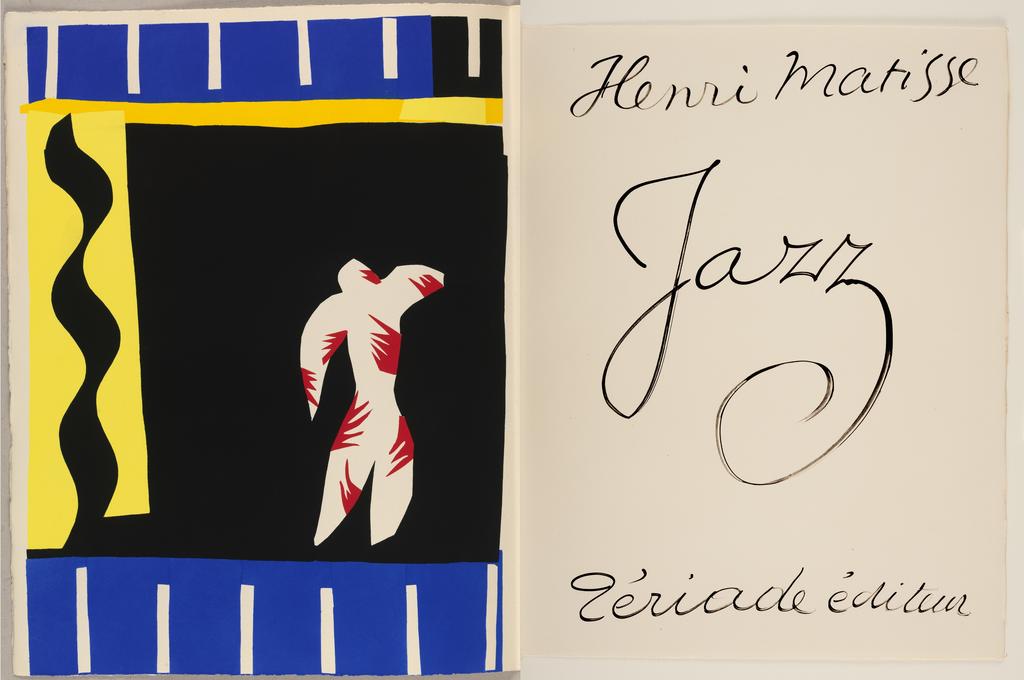 Henri Matisse (1869-1954), Jazz, planche I. Le clown, Paris, Tériade éditeur, 1947. Planches exécutées au pochoir (d’après les collages et sur les découpages d’Henri Matisse). Donation Alice Tériade, 2000. Le Cateau-Cambrésis, musée départemental Matisse. Photo service de presse. © Succession H. Matisse / Photo Musée départemental, Philip Bernard