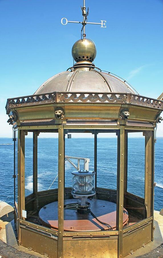Le phare des Pierres Noires dans le Finistère (nouvelle lanterne en laiton, cuivre et bronze par Crézé). © DIRM NAMP – Phare & Balises