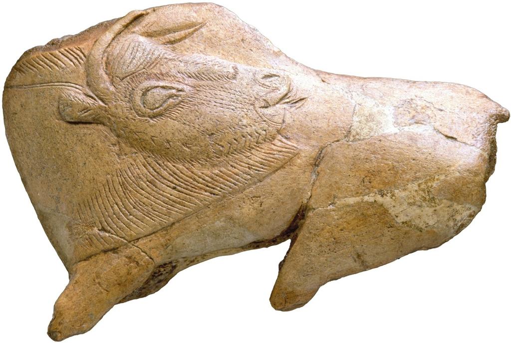 Cette pièce emblématique des collections du musée représentant un bison se léchant a été mise au jour dans l’abri de La Madeleine à Tursac. Elle fait partie des collections envoyées après leur découverte au musée de Saint-Germain-en-Laye (actuel musée d’Archéologie nationale) et « revenues » aux Eyzies grâce à un dépôt du MAN au profit du MNP. La matière (du bois de renne) ayant « manqué » à l’artiste, celui-ci a été obligé de représenter le bison avec la tête tournée vers son corps pour se lécher le flanc. Il a traité cette tête en léger relief et l’a rendue particulièrement vivante. Magdalénien, entre 17 000 et 14 000 ans.