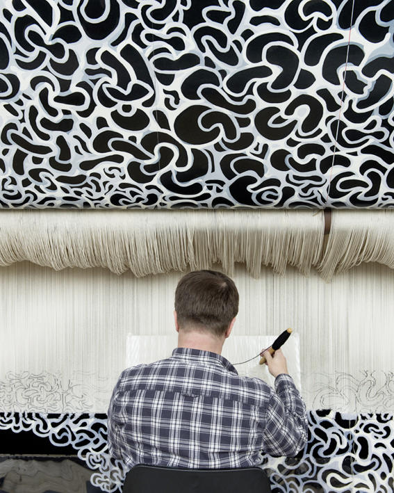 Un lissier dans l’atelier de la manufacture nationale de la Savonnerie à Paris. © Mobilier National / Vincent Leroux