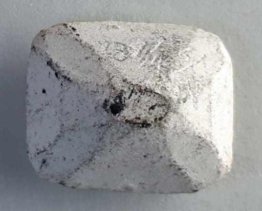 Moulage du diamant dit de la Maison de Guise, H. 2,07 ; l. 1,72 ; ép. 0,93 cm. Inscriptions sur la table : « 2 d'ordre 3 fleur de lys » et sur le pavillon : « 28 1/4 6/32 ». © Musée du Louvre / département des Objets d’art du Moyen Âge, de la Renaissance et des Temps modernes