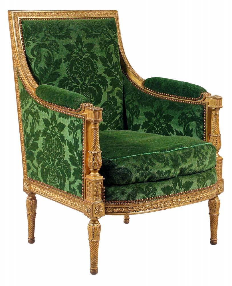 La bergère à dossier plat à la reine en hêtre très finement sculpté et doré d’« époque Louis XVI » préemptée par le château de Versailles le 9 juin 2011. © DR