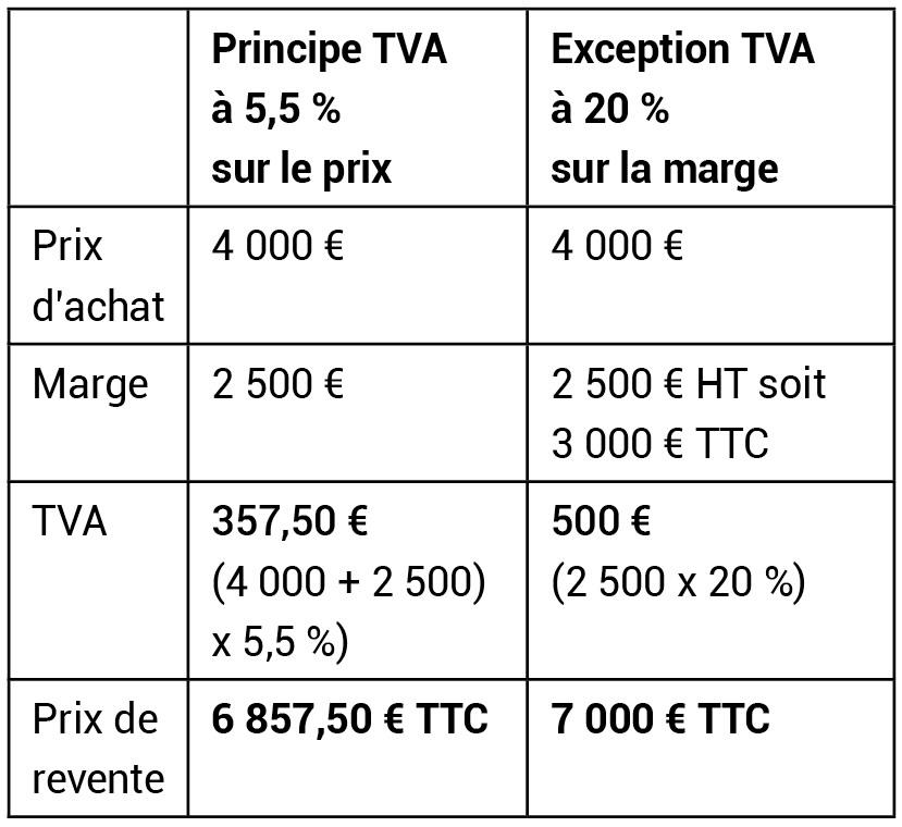 2. L’exception, une TVA de 20 % sur la marge bénéficiaire
